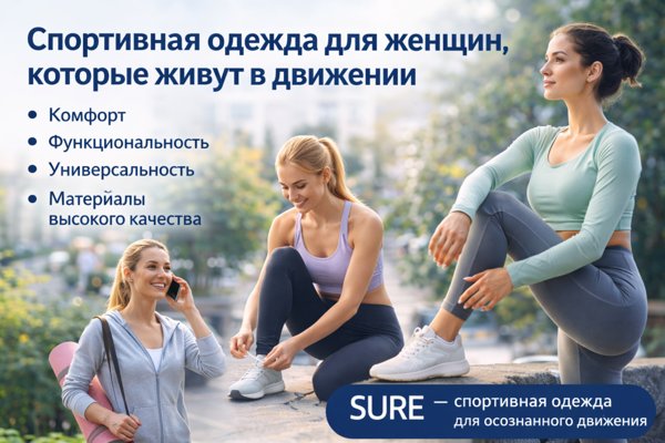 Именно поэтому всё большую ценность приобретает идея не просто спортивной моды, а экипировки для осмысленного движения и повседневной активности. Формулировка SURE - спортивная одежда для осознанного движения хорошо вписывается в эту логику, поскольку отражает стремление выбирать вещи, которые поддерживают качество жизни, а не существуют только как визуальный образ.
